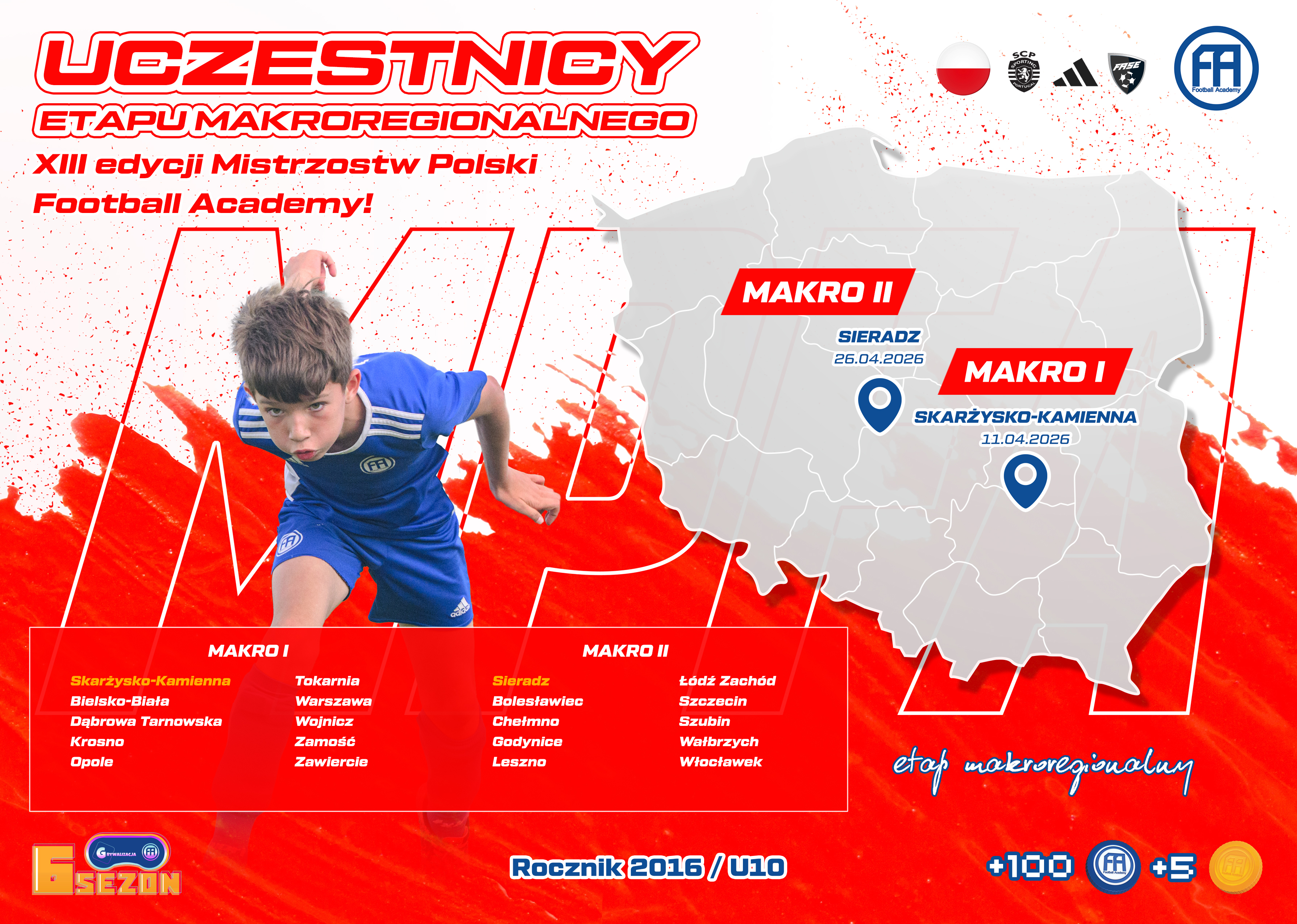 Emocje po jesiennych zmaganiach jeszcze nie opadły, a my już wrzucamy najwyższy bieg! Etap mikroregionalny wyłonił zespoły gotowe na kolejny krok. Teraz poprzeczka wędruje jeszcze wyżej, a etap makroregionalny wystartuje już w kwietniu. To tam zacznie się prawdziwa walka o miejsce w ścisłym finale Mistrzostw Polski Football Academy, a każdy mecz będzie kolejnym rozdziałem piłkarskiej historii pisanej przez młodych zawodników FA.