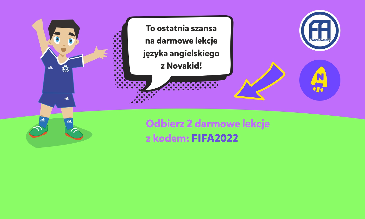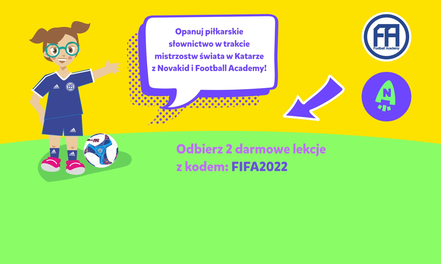 Mistrzostwa Świata w Katarze powoli dobiegają końca, a wraz z nimi możliwość skorzystania z kodu na dwie darmowe lekcje języka angielskiego Novakid dla piłkarzy Football Academy! Dla wszystkic ...