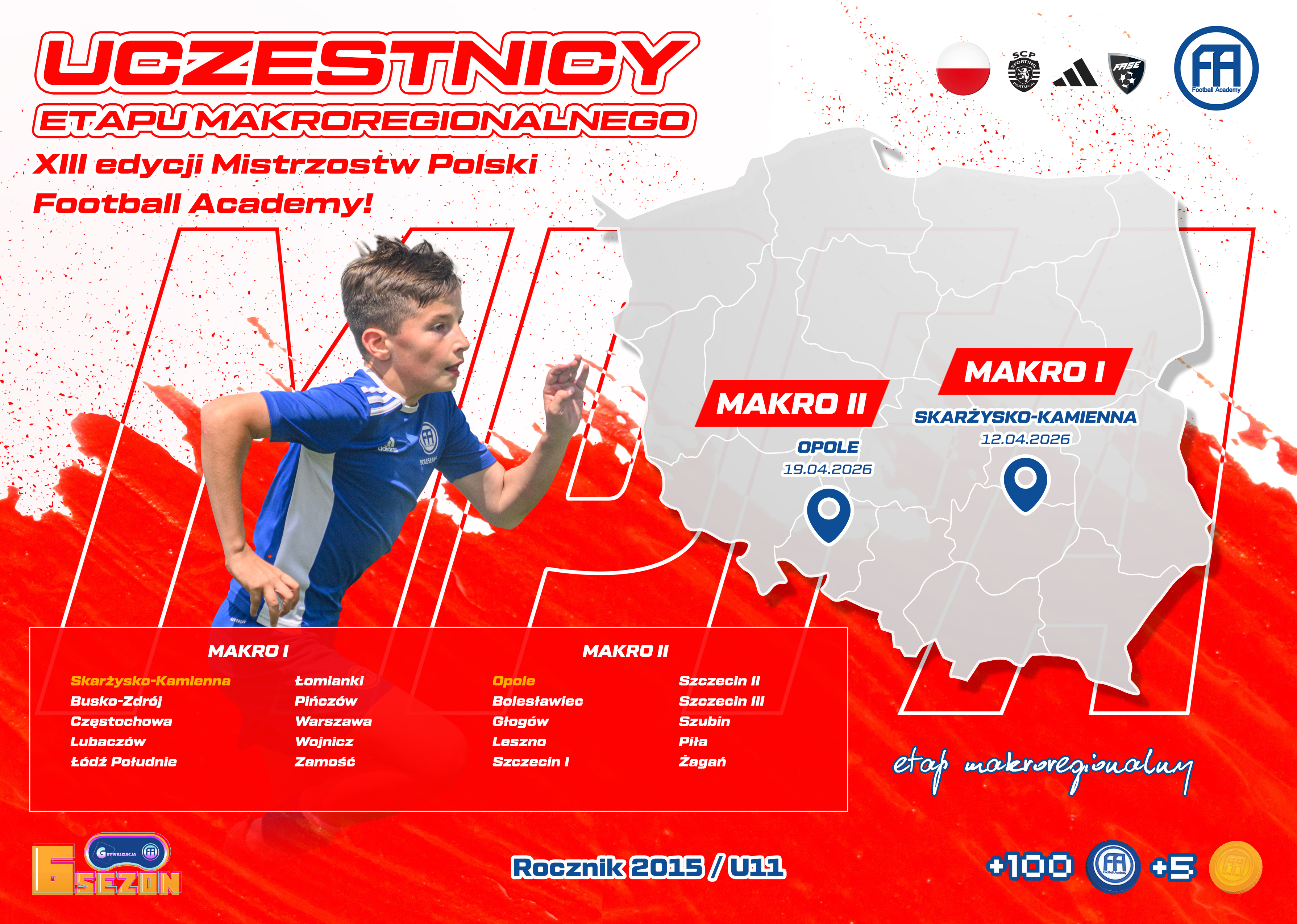 Emocje po jesiennych zmaganiach jeszcze nie opadły, a my już wrzucamy najwyższy bieg! Etap mikroregionalny wyłonił zespoły gotowe na kolejny krok. Teraz poprzeczka wędruje jeszcze wyżej, a etap makroregionalny wystartuje już w kwietniu. To tam zacznie się prawdziwa walka o miejsce w ścisłym finale Mistrzostw Polski Football Academy, a każdy mecz będzie kolejnym rozdziałem piłkarskiej historii pisanej przez młodych zawodników FA.