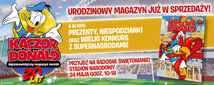 Za nami 20. już urodziny magazynu „Kaczor Donald” w Polsce. Wielkie świętowanie rocznicy dla dzieci i wszystkich fanów odbyło się 24 maja na płycie Stadionu Narodowego. Oczywiście nie mogło tam ...