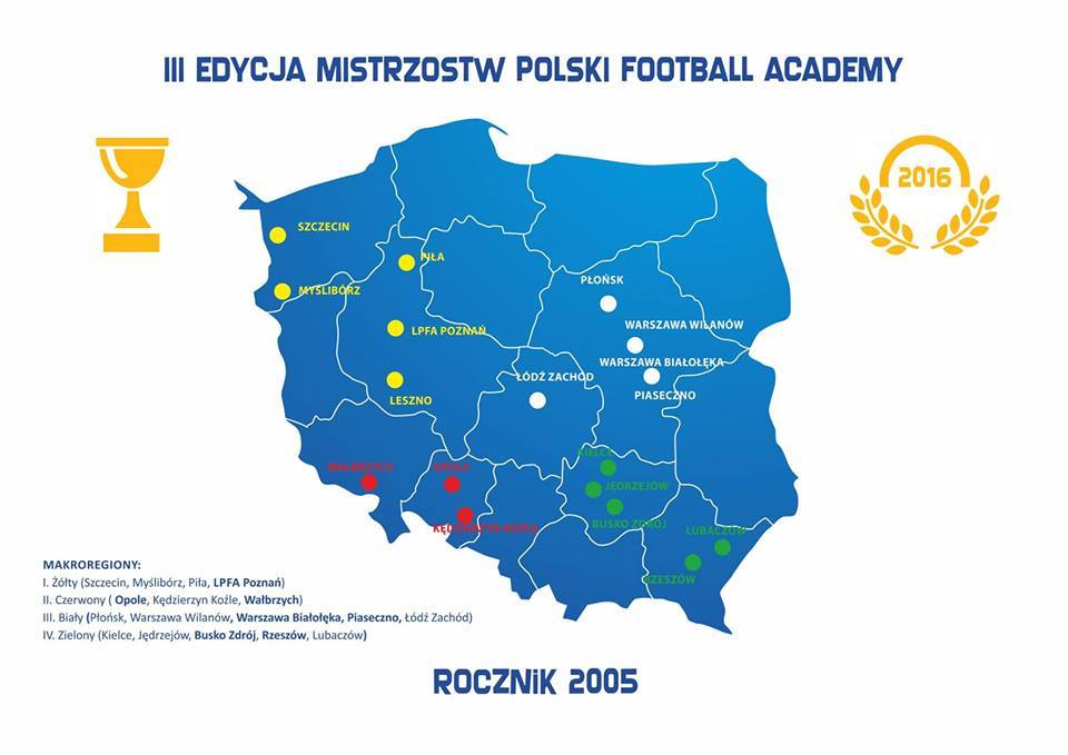 Na przełomie września i października rozpoczęła się rywalizacja na szczeblu mikroregionalnym trzeciej edycji Mistrzostw Polski Football Academy. W sezonie 2015/16 Mistrzostwa Polski Football Ac ...